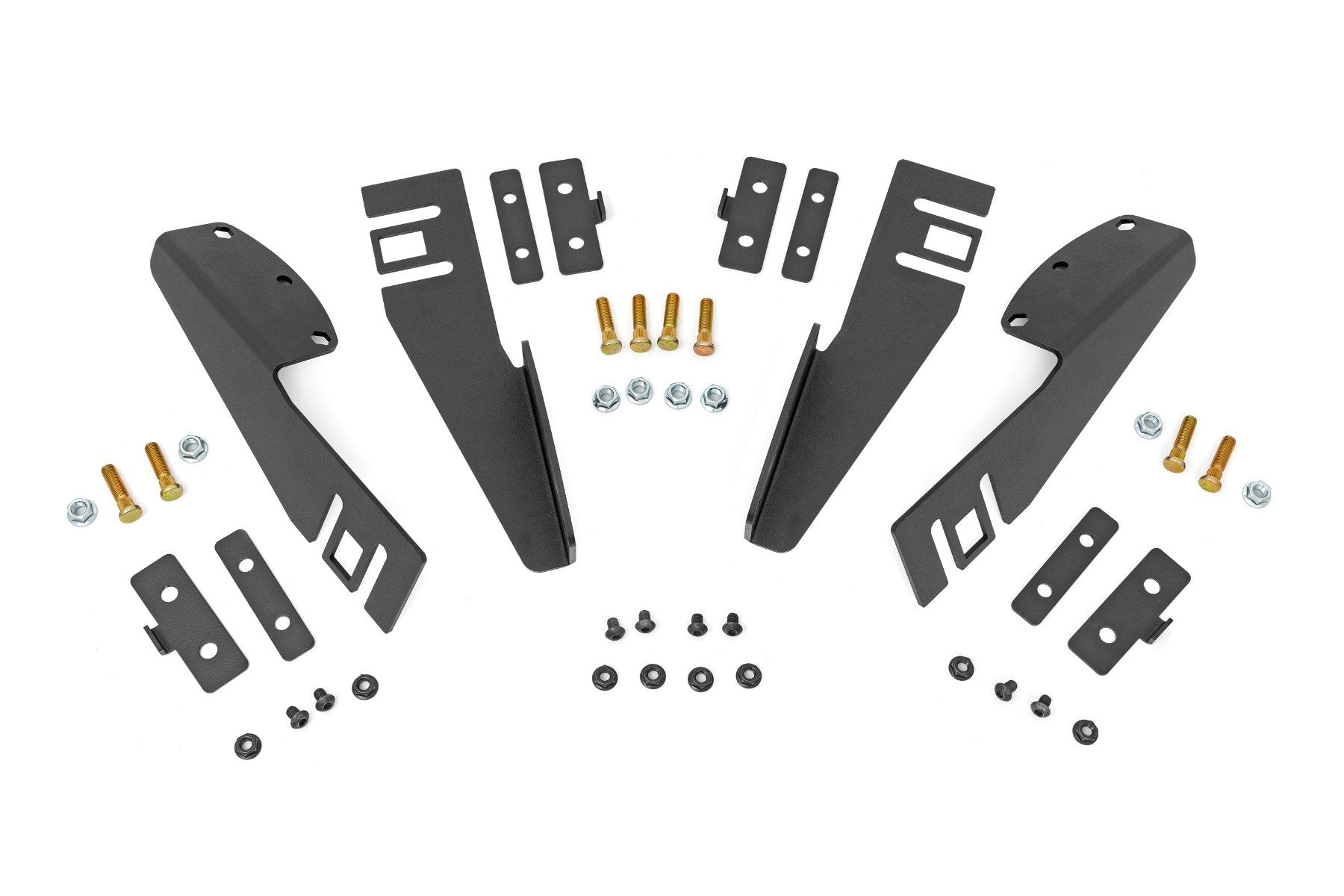Allows for install and removal of extruded bed rack onto truck bed rails.\ No drilling required.\ Easy clamp-on design using 10mm hardware.\ 7 gauge material for main mounting plates.\ 11 gauge material for clamp plates.