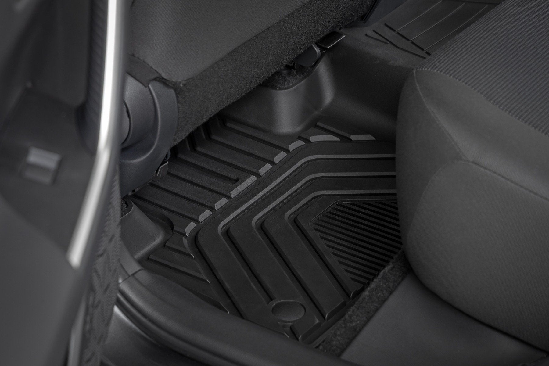 Quick and Easy Installation: Designed for a hassle-free setup, making installation fast and simple.\ Perfect Fit for Your Vehicle: Meticulously engineered to ensure a flawless fit for each vehicle model, providing optimal performance.\ Advanced Injection Molding Technology: Crafted using cutting-edge technology to ensure precision and durability.\ All-Weather Protection: Defend your vehicle against snow, mud, sand, saltwater, and more with unbeatable all-season protection.\ Extreme Temperature Resistance: Built to withstand the harshest temperatures without compromising performance.\ Spill Saver Lip: Specially designed to prevent spills from reaching your carpet, ensuring clean and dry floors.\ Non-Slip Textured Surface: Featuring a textured surface that provides maximum grip for added safety and comfort.\ Durable TPE Material: Premium rubber-like TPE material offers flexibility while maintaining its shape over time.\ Effortless Cleaning and Maintenance: Simply remove the mats and spray with water to keep them looking fresh and new.\ Limited Lifetime Warranty: Enjoy peace of mind with a limited lifetime warranty, ensuring long-term satisfaction.