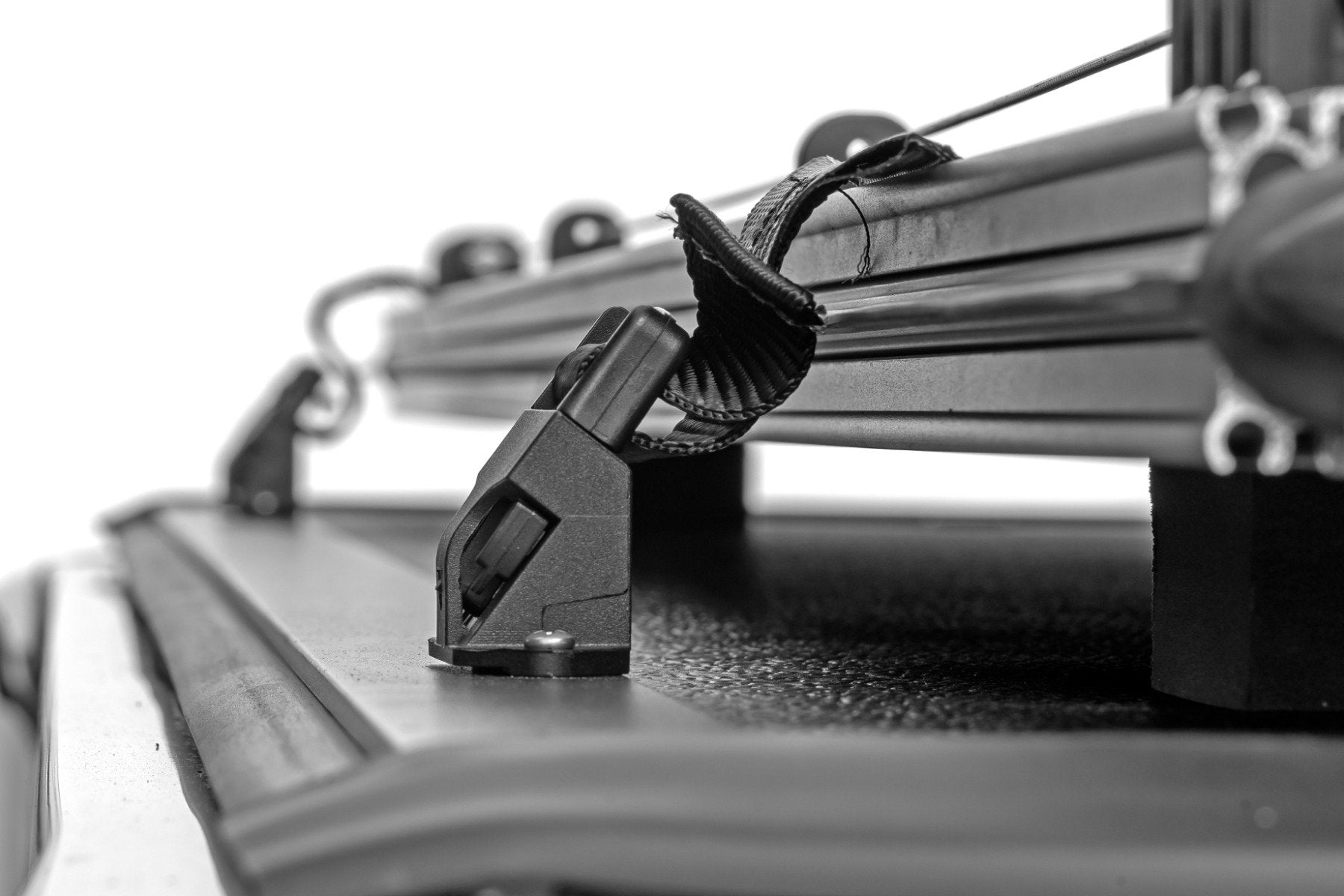 Ultra Low Profile Design: Flush-mounted tri-fold cover sits level with the bed rails for a sleek, modern look with a matte black aluminum finish.\ Heavy-Duty Aluminum Panels: Rigid aluminum construction delivers excellent strength, durability, and resistance to warping or flexing under load.\ Tri-Fold Quick Access: Fold the cover back in seconds to access cargo without fully removing the cover.\ Corrosion-Resistant Frame: Black powder coated aluminum frame resists rust and corrosion for long-lasting performance in all weather conditions.\ Secure Track and Rail System: Integrated mounting rails provide a stable, low-profile fit with drain tubes included for effective water management.\ Drive Open or Closed: Designed to safely operate fully closed or in the 2/3 open position for hauling larger items.\ Auto-Latching Security: Automatic latching system engages when closed to keep your cargo secure without extra steps.\ Single Cable Release: Interior cable pull allows fast, one-handed latch release and easy bed access.\ No-Drill Installation: Simple bolt-on design installs and removes easily using basic tools, all included.\ Integrated Safety Straps: Durable nylon safety straps secure the cover when folded open during transport.\ 5-Year Warranty Coverage: Backed by a 5-year warranty for added confidence and long-term peace of mind.