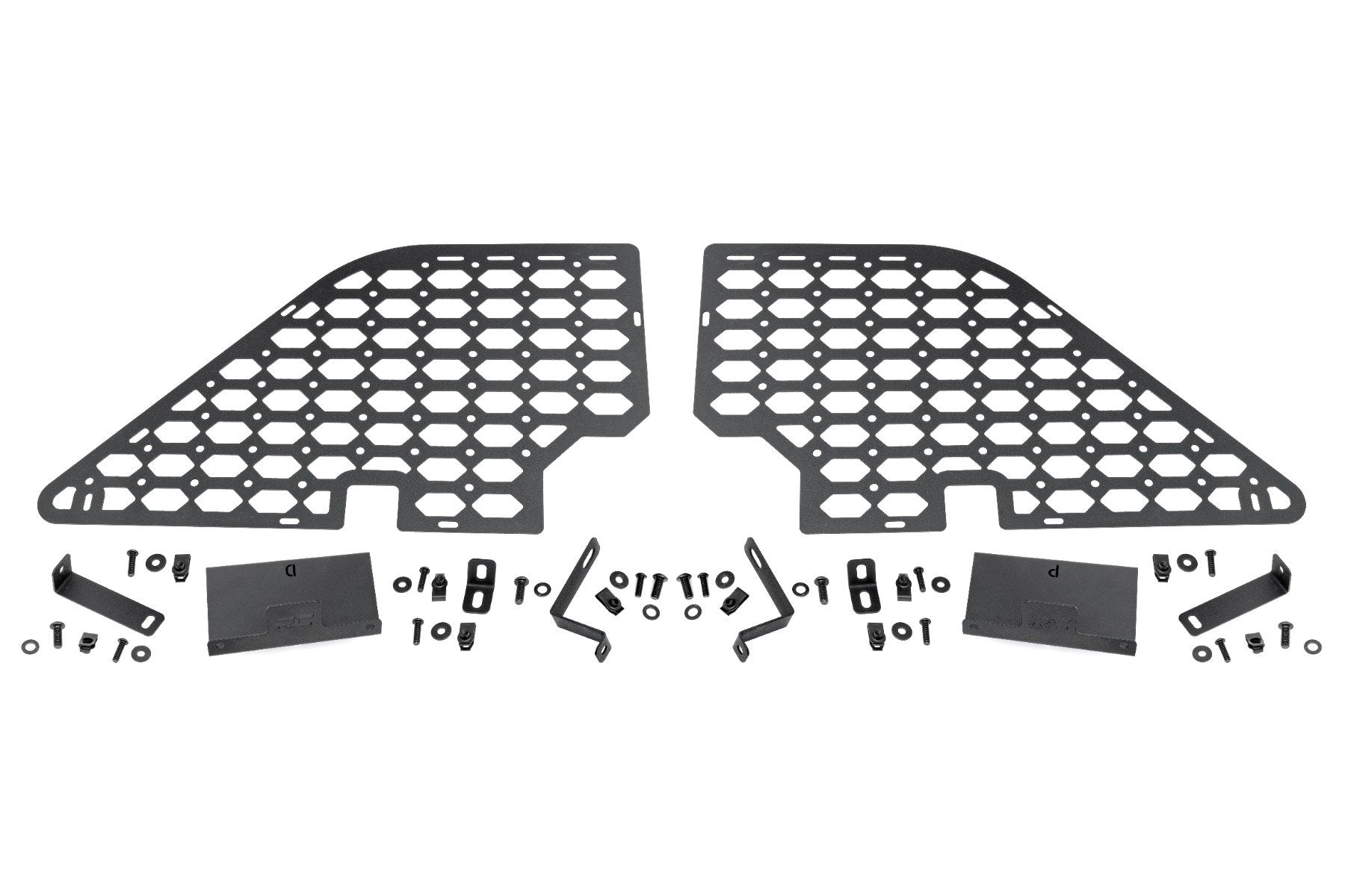 Durable Components. Whether your rig is a workhorse or an off-road overlander, this kit can be customized to get the job done. This modern solution easily secures to the inside of your four-door Bronco's rear windows allowing you to keep your necessities close. Rough Country's Molle Rack system is constructed of heavy-duty 1/8" thick steel and is coated with a durable powder coat finish!