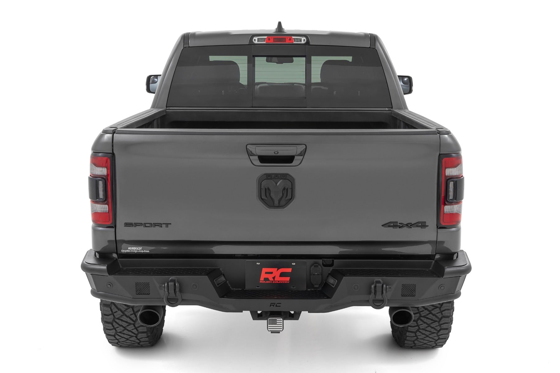 Simple, Bolt-On Installation: Installs easily with basic tools, no cutting or welding required.\ Heavy-Duty Steel Construction: Built from high-strength steel for long-lasting durability and impact resistance.\ Aggressive Tubular Design: Sleek, high-clearance styling enhances rear-end protection and off-road appearance.\ Factory Hitch Compatibility: Retains full use of the original receiver hitch without modifications.\ Sensor-Ready Configuration: Designed to accommodate factory backup and proximity sensors for full functionality.\ Includes Block-Off Plates for Non-Sensor Models: Mesh inserts are provided to cleanly cover sensor openings on vehicles not equipped with factory sensors.\ Light-Ready with LED Mounts: Designed with provisions to easily install Rough Country's 2-inch LED light cubes for improved rear-facing visibility.