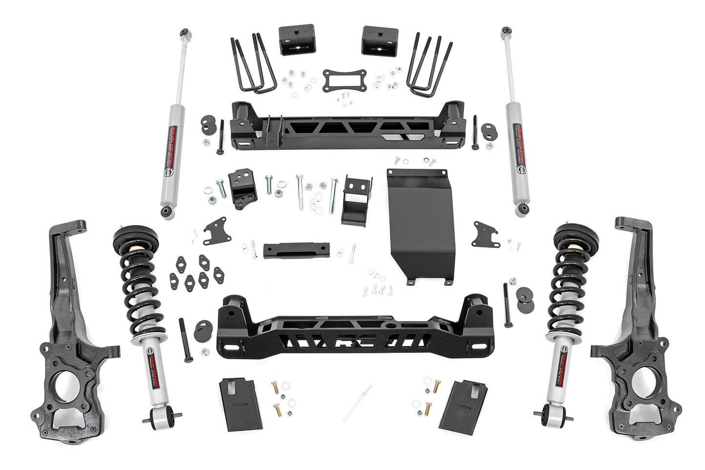 Transform your Ford Ranger from mid-size to masterpiece with Rough Country's 6-inch Lift Kit! This kit includes everything you need for a monster makeover of your rig. A set of beefy front and rear crossmembers keep everything in line, while a durable skid plate offers unbridled protection against off-road obstacles. A set of lifted, one-piece cast knuckles and rear, fabricated lift blocks offer plenty of ride height to run larger tires and wheels! This kit also features Rough Country's Nitrogen-charged N3 shocks. These 10-stage variable valving, high-pressure Nitrogen charged shocks offer a fantastic blend of off-road action and smooth highway ride quality. Rough Country's Ford Ranger kit is engineered to preserve the smooth, factory like ride while upgrading your vehicle's performance and off-road potential. Set your Ranger apart from the pack with this total transformation for your truck! Includes a Lifetime Replacement Guarantee.