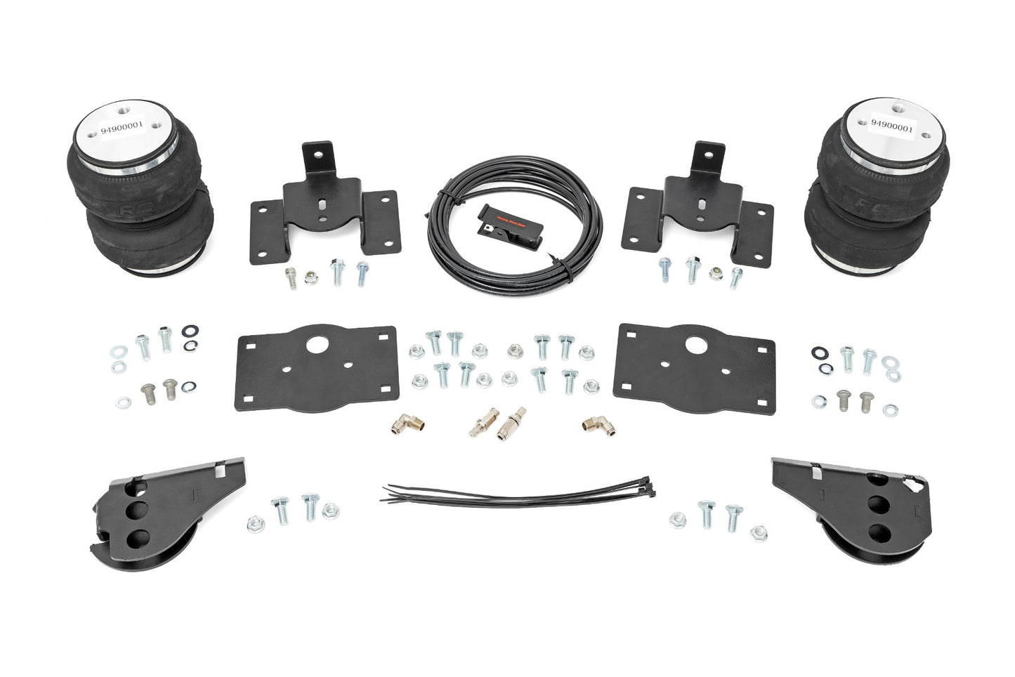 Level Your Ride: Supports up to 5,000 lbs to level your truck for safer towing and hauling.\ Heavy-Duty Design: Includes double convoluted air bags, durable powder-coated steel brackets, and DOT-approved airlines for lasting strength.\ Effortless Installation: Easy, quick setup with all necessary components and 1/4" push-to-connect air fittings for a secure, fast installation.\ Minimized Sway and Bottoming Out: Reduces trailer sway and prevents bottoming out during braking and steering for a smoother ride.\ Onboard Air Compressor and Wireless Controller (Optional): Adjust air pressure easily on the go with the added convenience of a wireless controller and onboard compressor.\ Comprehensive Kit: Everything you need for leveling your truck is included, perfect for hauling, towing, or everyday use.\ Reliable Warranty Coverage: Includes a limited lifetime warranty on air springs and a two-year replacement warranty on the compressor for lasting peace of mind.