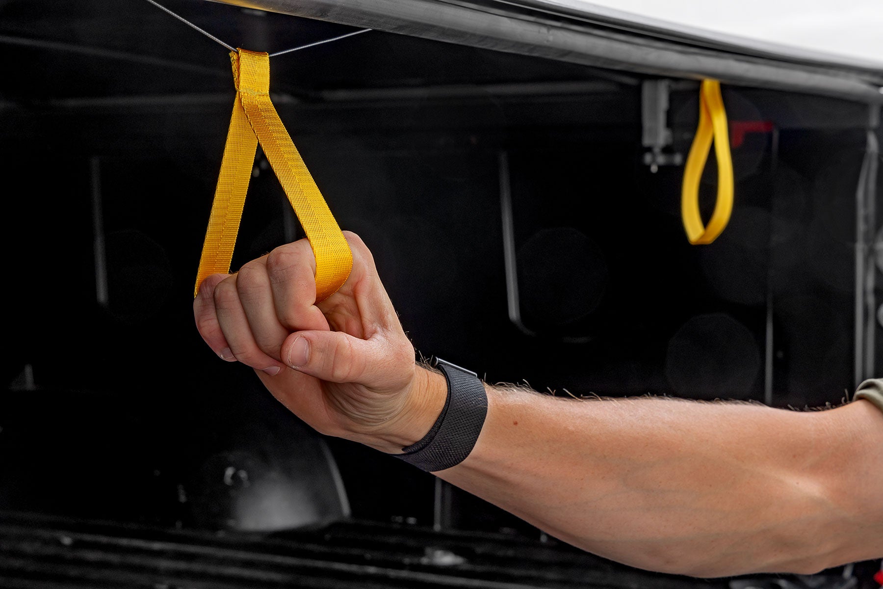 Premium Marine-Grade Vinyl: Crafted from high-quality marine-grade vinyl with a sleek matte black finish for superior durability and refined style.\ Quick Roll-Up Access: Effortlessly rolls up for fast, full-bed access - perfect for loading or unloading cargo on the go.\ Low-Profile Mounting: Sits just 1-1/8" above the bed for a streamlined, top-mount appearance that enhances your truck's look.\ Corrosion-Resistant Frame: Built with black powder-coated aluminum for lasting strength and resistance against the elements.\ Secure Spring-Latch System: Latches securely in place to keep the cover tight, reduce noise, and deter shifting while driving.\ Convenient Single-Cable Release: One-pull cable design makes opening and accessing your bed simple and fast.\ All-Weather Side Seals: Heavy-duty hook-and-loop side closure shields your cargo from rain, dust, and debris.\ Hassle-Free Installation: Installs easily with no drilling required - everything you need is included right in the box.\ Backed by a 5-Year Warranty: Drive with confidence knowing your cover is protected for the long haul.