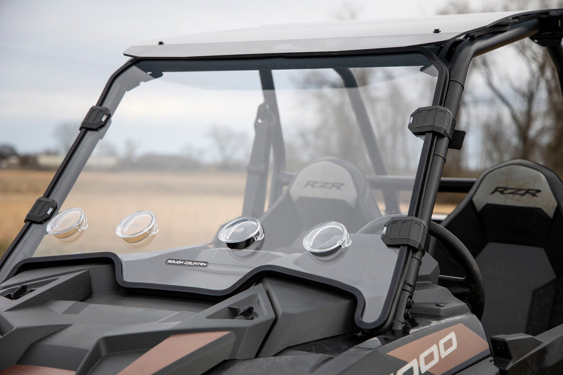 Customizable Ventilation: Equipped with 4 adjustable vents that allow you to control airflow, keeping you cool and comfortable during any ride.\ 360┬░ Rotating Vents: Easily direct airflow exactly where you need it for maximum comfort, whether you're driving through trails, dunes, or rugged terrains.\ Adjustable Vents: Easily control airflow by closing, opening, or half-opening the vents for optimal comfort.\ Unmatched Strength: Crafted from 1/4ΓÇ¥ polycarbonateΓÇö250x stronger than glass and 25x stronger than acrylicΓÇöfor maximum durability and impact resistance.\ Contoured for Perfection: Engineered with a precision contoured design to seamlessly integrate with your Polaris RZR XP, enhancing both style and functionality.\ Precision Fit and Seal: Includes a high-quality rubber seal for a snug, rattle-free fit that keeps dust, debris, and water out.\ Compatible with Roofs: Designed to work flawlessly with both factory and most aftermarket roofs for a hassle-free upgrade.\ Quick and Easy Installation: Spend less time in the garage and more time on the trail with this straightforward, user-friendly setup.\ Made in the USA.